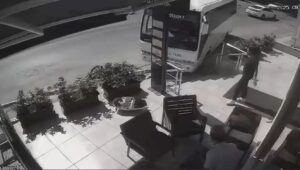 Denizli’de park halindeyken freni boşalan servis midibüsü, karşı şeride geçerek yol kenarındaki elektrik direğine çarparak durabildi. Midibüsün hareket ettiği sırada yolun ve kaldırımın boş olması bir faciayı engelledi.