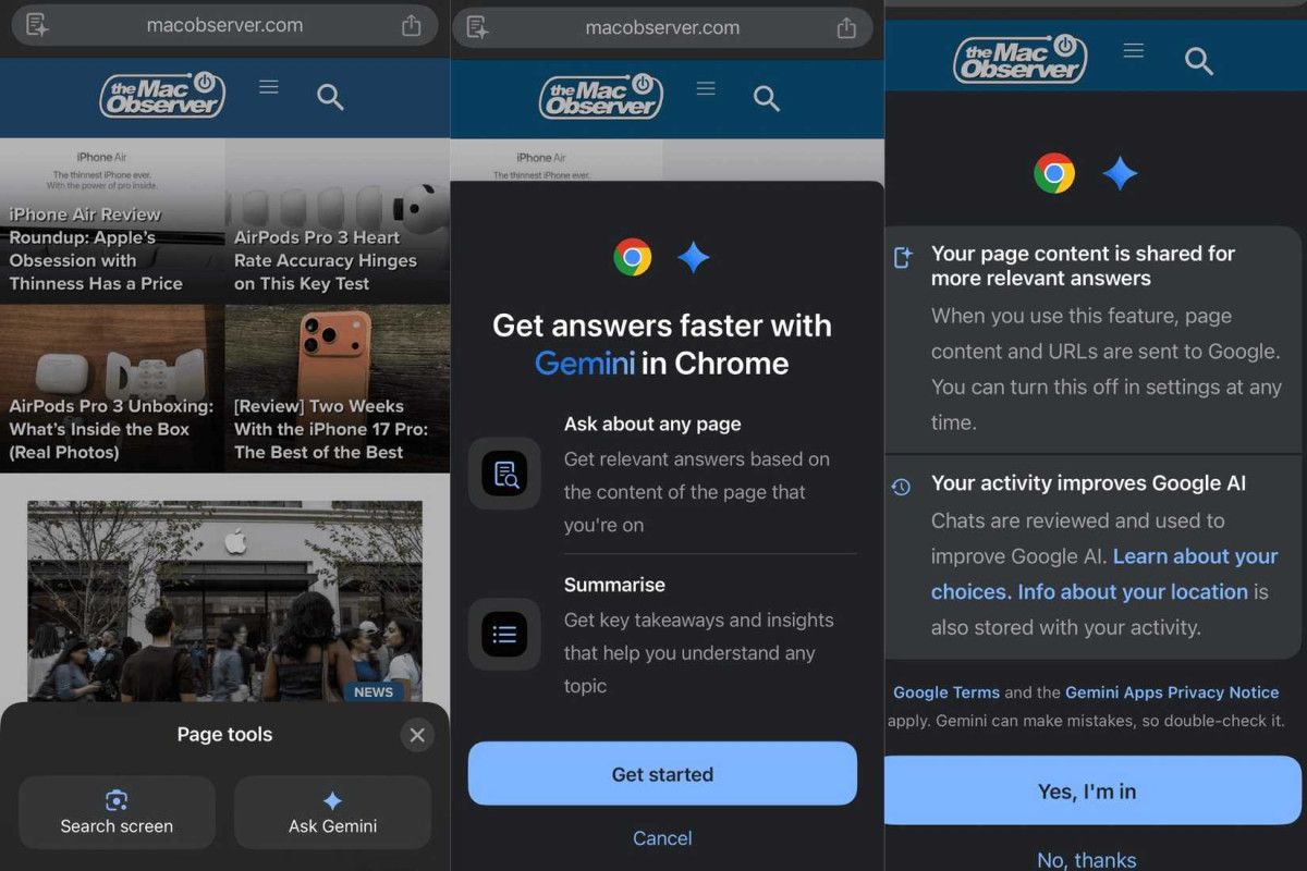 Google, masaüstü ve Android platformlarından sonra Gemini yapay zeka asistanını şimdi de iPhone ve iPad’deki Chrome tarayıcısına entegre etmeye başladı.