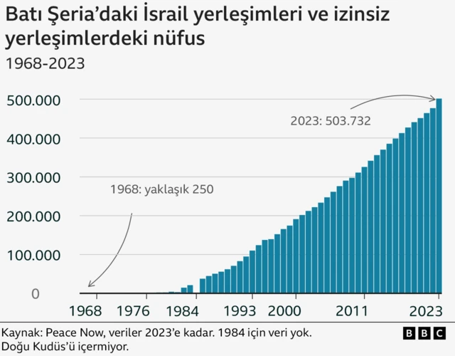 İsrail ise Batı Şeria’daki yerleşim yerlerini alan ve nüfus olarak genişletmeye devam ediyordu – bu eğilim 2025’e kadar devam etti.