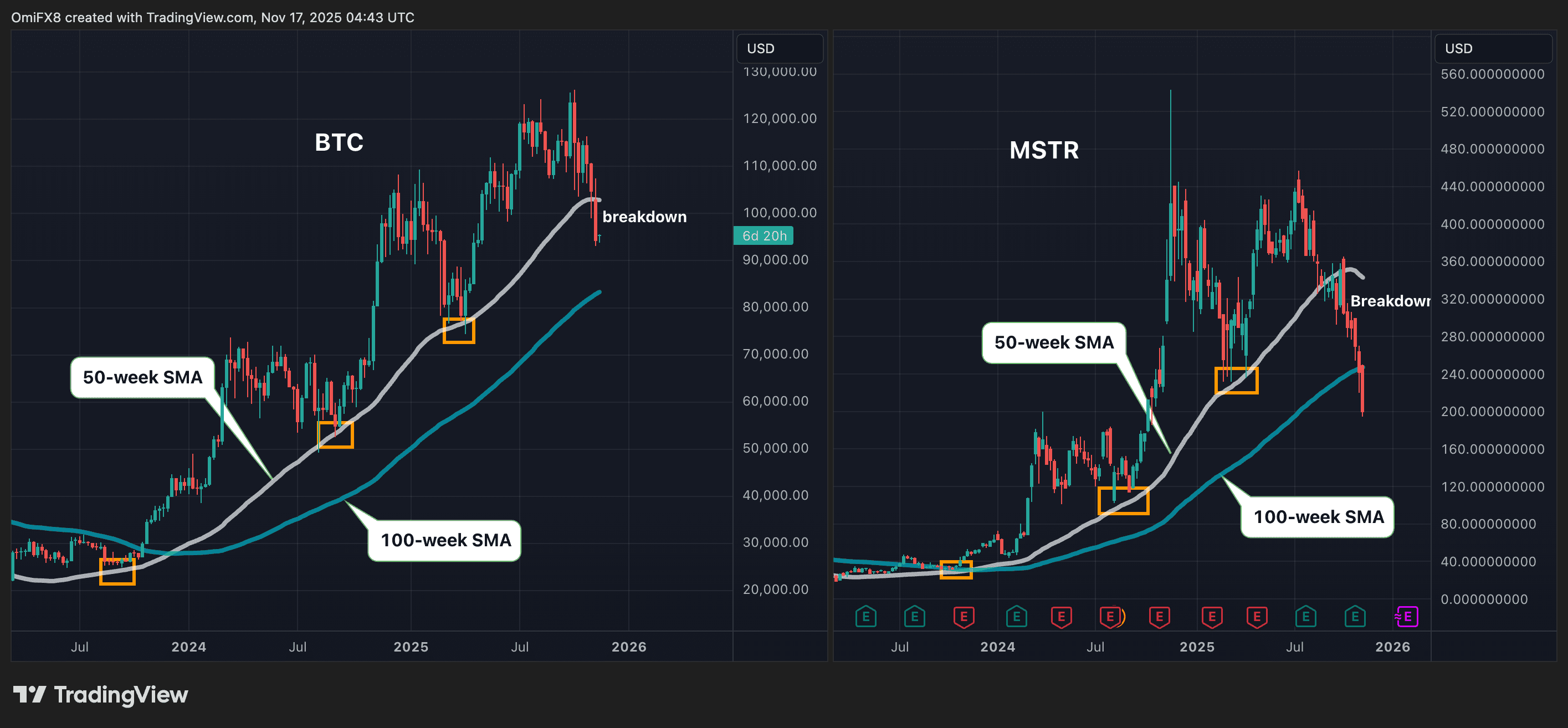 BTC vs MSTR (TradingView) The former support at the 50-week simple moving average has now turned into resistance, meaning any bounce will likely face selling pressure near $102,868. Sustained weekly closes above this level would be needed to signal a renewed bullish trend.